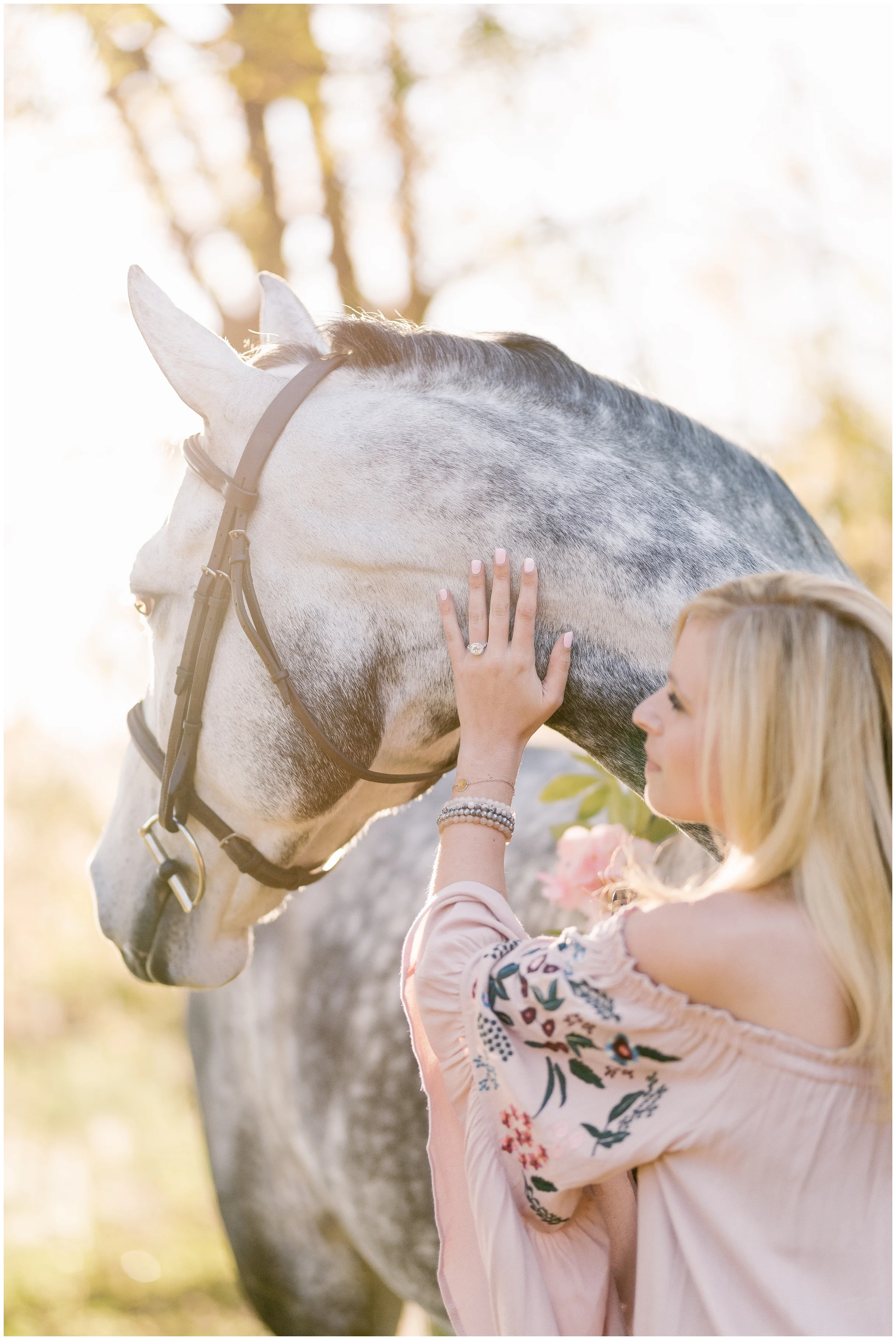 This was one of the most fun sessions of all time!! When Hannah's mom Laura contacted me about wanting to plan a photoshoot with her daughter that would end up being a surprise proposal I was absolutely on board! Hannah had no idea that the session with her new horse Sugar Magnolia (aka Febe) was all a set up from the beginning, and we started out the session at the stunning Kingsmeade Farm in Tampa, Florida. It was a lovely sunny evening at the farm, and Febe was super well behaved and was quite a good model! Half way through the shoot, Hannah's boyfriend showed up and surprised her by dropping down to one knee and proposing! It was such a sweet moment and I was honored to be a part of it and to capture the moment for the two of them. Best of luck Hannah and Mo to the next amazing step in the two of your lives!